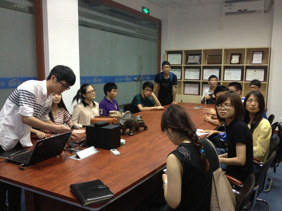 与会人员陈工、夏工和运营中心的罗经理,和深大学子一行14人,为这次校外别开生面的社会性课堂注入青春的气息。来自经济学院的深大学生对我司工程师准备的PPT演讲材料十分好奇,学子们准备的问题围绕环保行业的发展前景,遇到的瓶颈,产品的价格利润,目前环保行业经营的状况等表现出条理清晰的关注目光,他们更关注我们的技术领域,我们公司今年的重中之重:申请研发的几项专利,在核实批准当中。我们工程师与行政人员对于他们的认真、机敏表示赞许。负责此次社会实践的团队队长,学员们充分表现了作为当代学生积极好学、大胆思考、青春活力的一面。